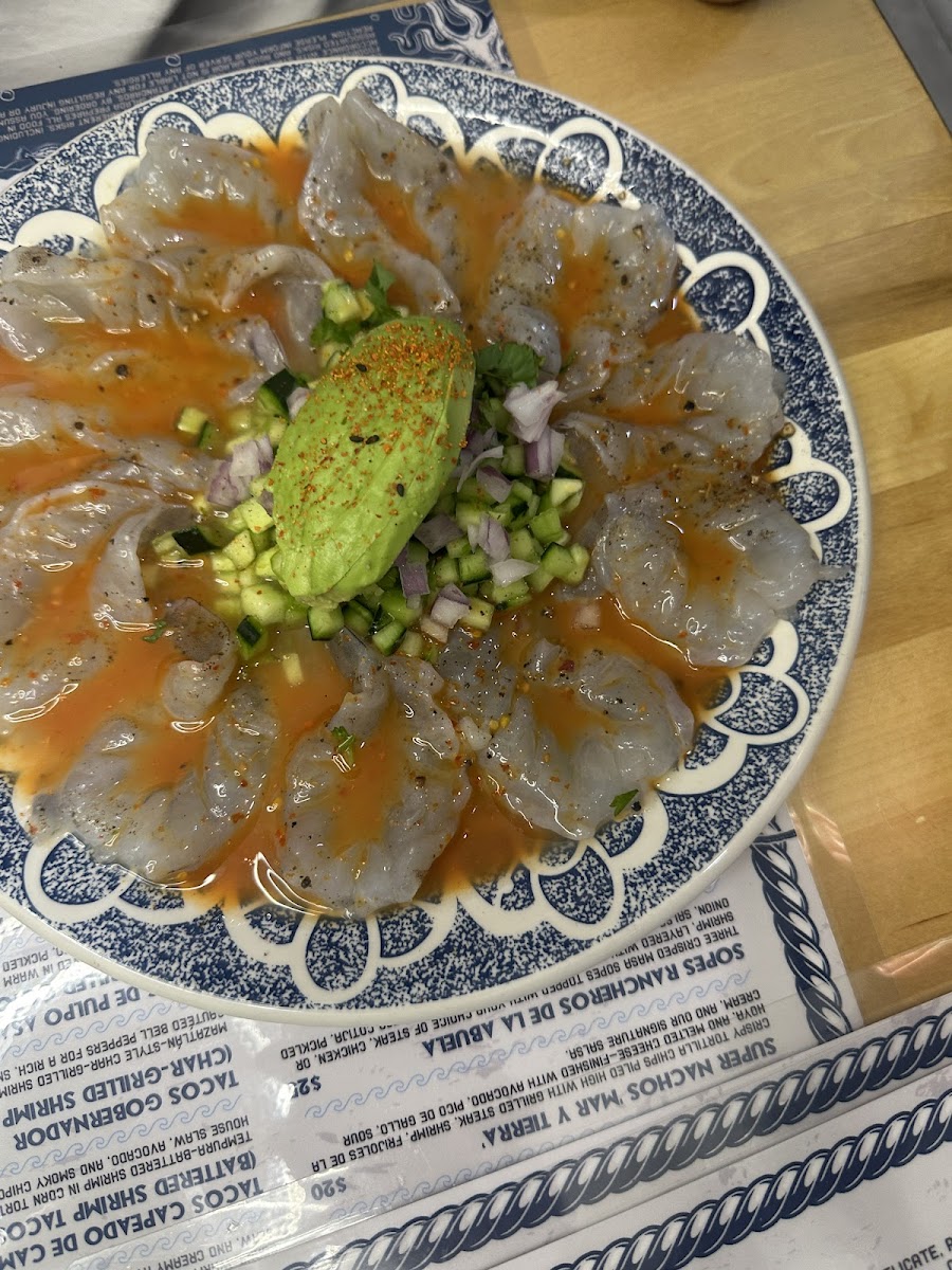 Sashimi-grade shrimp, expertly diced and marinated in fresh lemon juice and spicy Chile Chiltepín, a classic preparation from the vibrant shores of Mazatlán. Mixed with crisp cucumber, juicy tomato, zesty onion, and fragrant cilantro, this dish is a true celebration of traditional Sinaloan flavors—bold, refreshing, and authentically coastal.